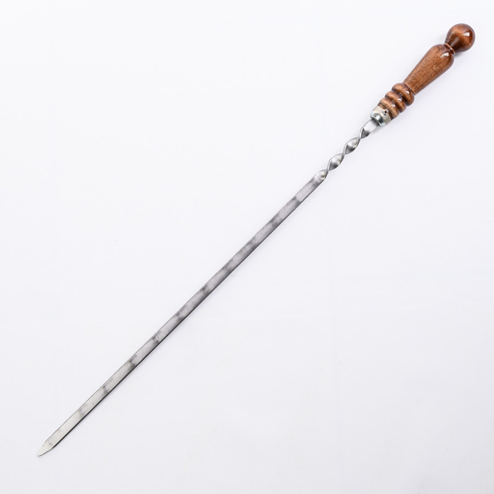 - Артикул: Шампур нержавеющий 670*12*3 мм с деревянной ручкой